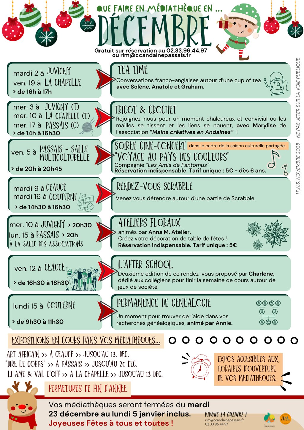 Nous vous proposons un programme varié pour clôturer cette année 2025 en beauté : des fleurs, des couleurs, du thé, du tricot, du crochet, des jeux de société ...et trois expos !