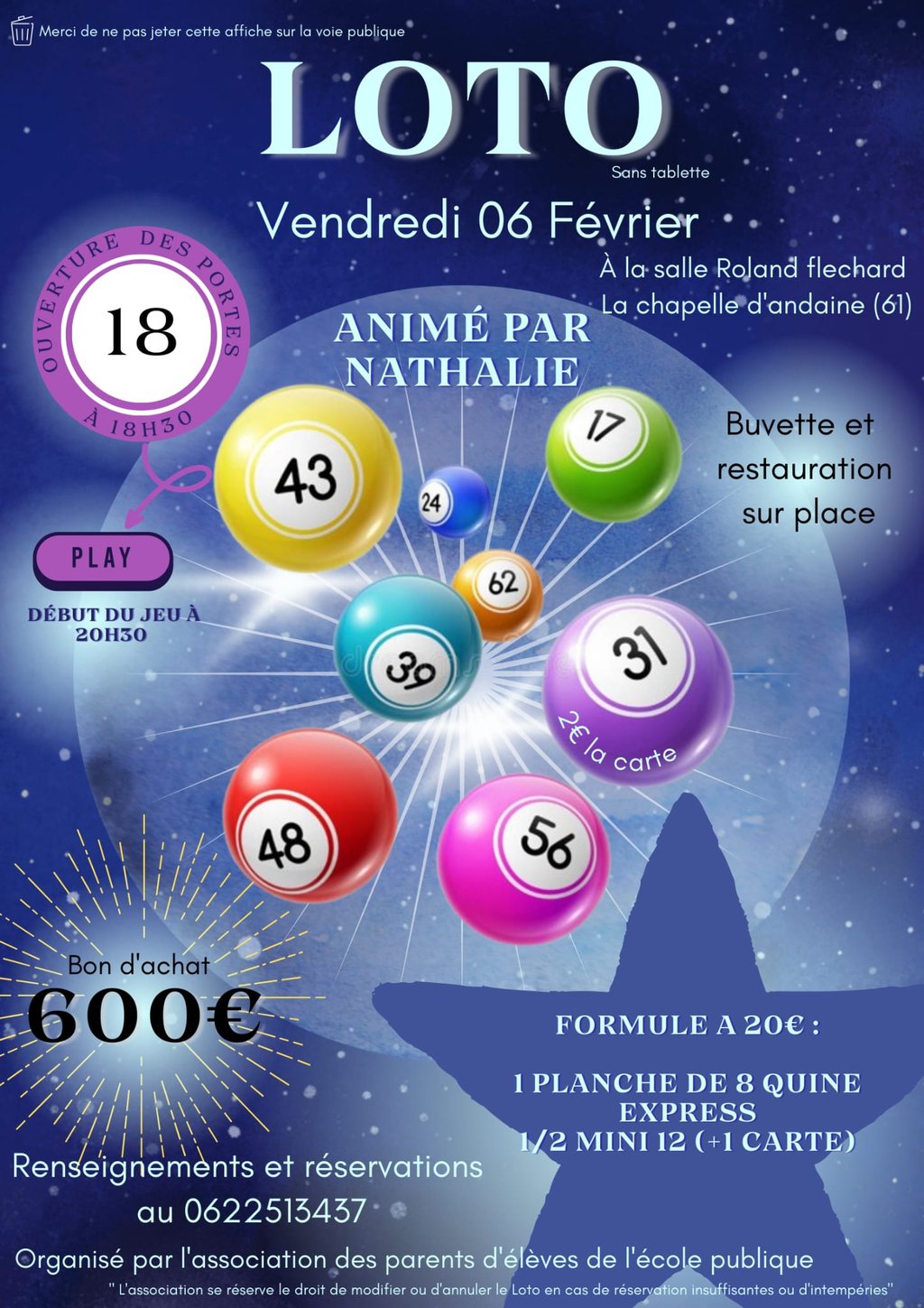 Renseignements et réservations au 06 22 51 34 37