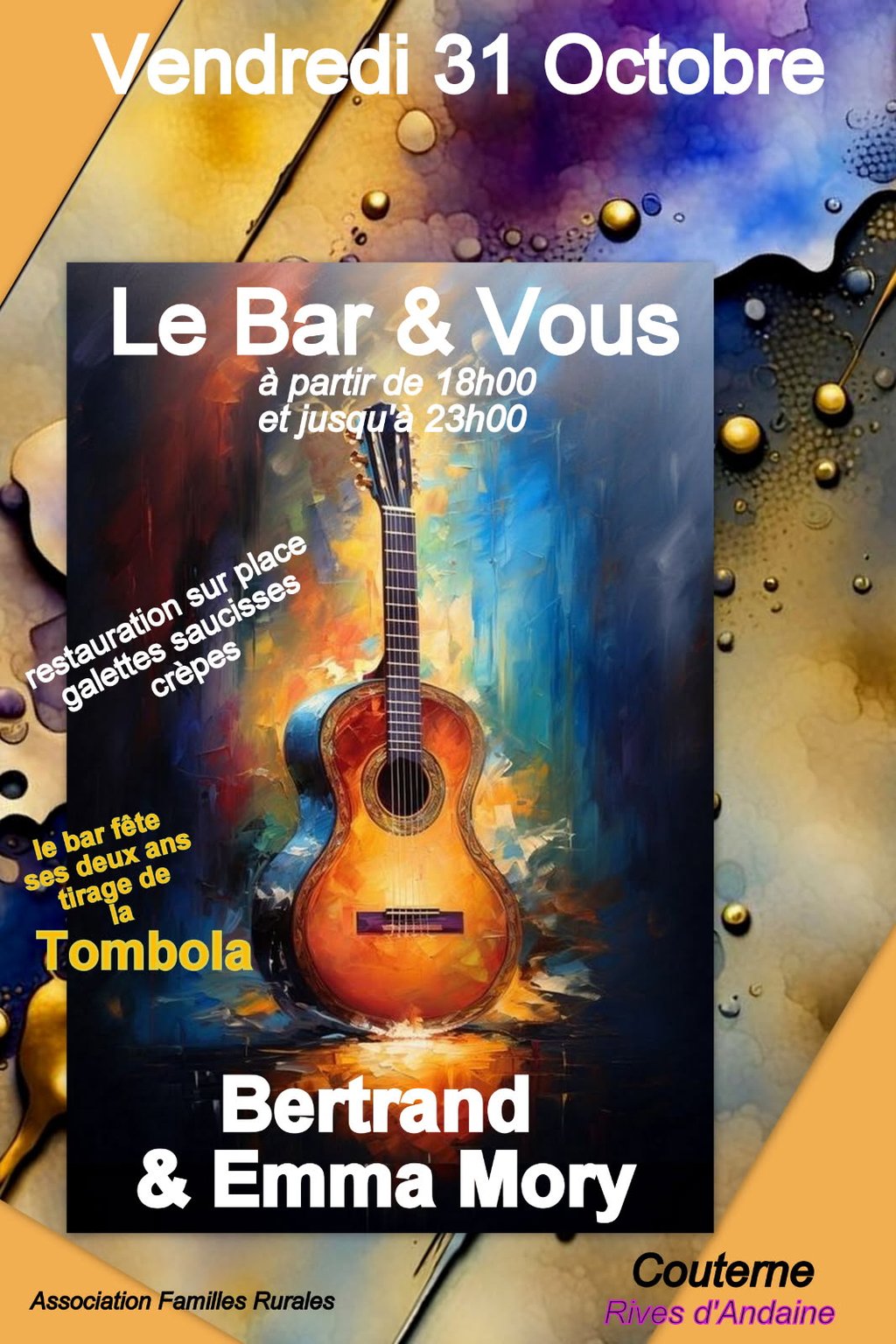 Al 'occasion de ses deux ans, le Bar & Vous organise une soirée animée avec Bertrand et Emma Mory.